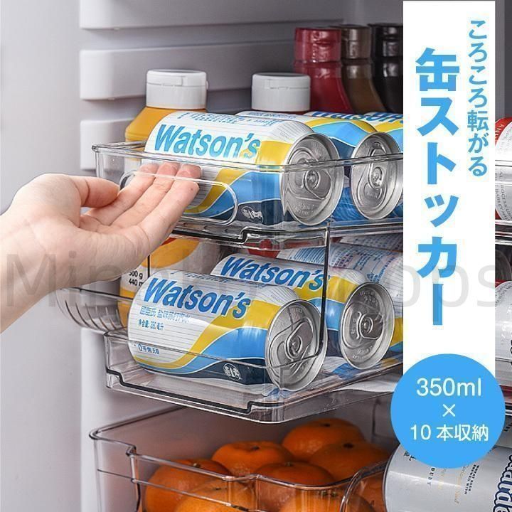 2個冷蔵庫缶ストッカー 350ml 2段 コロコロ 転がる 収納 保管 ストック キッチングッズ ラック ディスペンサー ドリンク ビール ジュース飲み - メルカリ。
