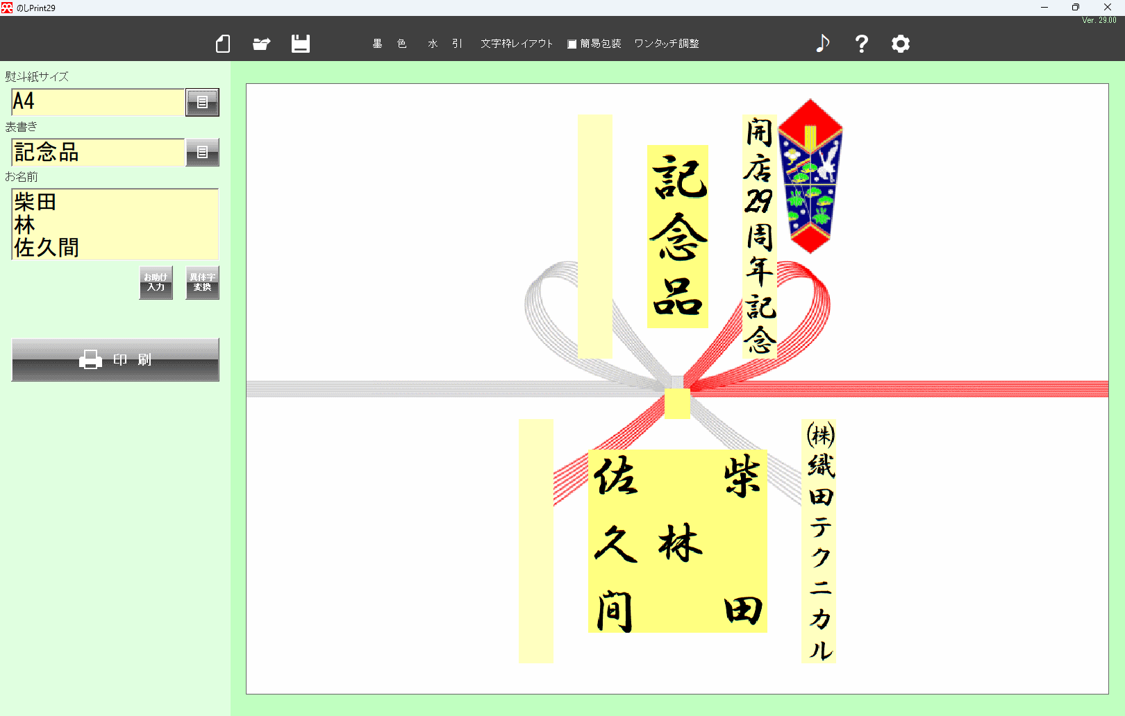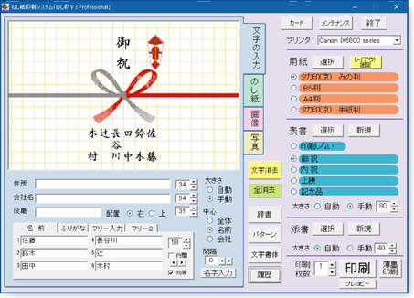 のし職人>高性能で安い!のし紙印刷ソフトのし職人。