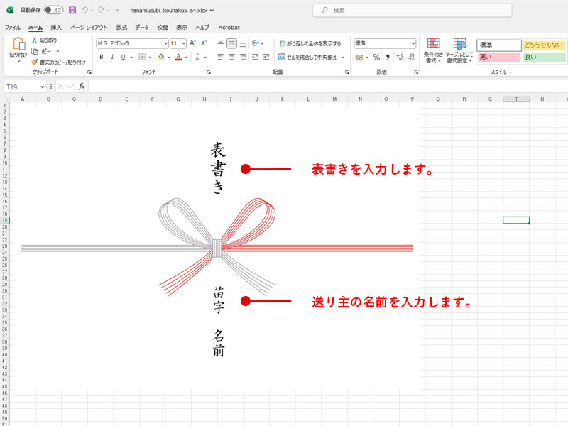 エクセル ワードよりも簡単 「のし作」 テンプレート で 楽々管理。