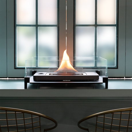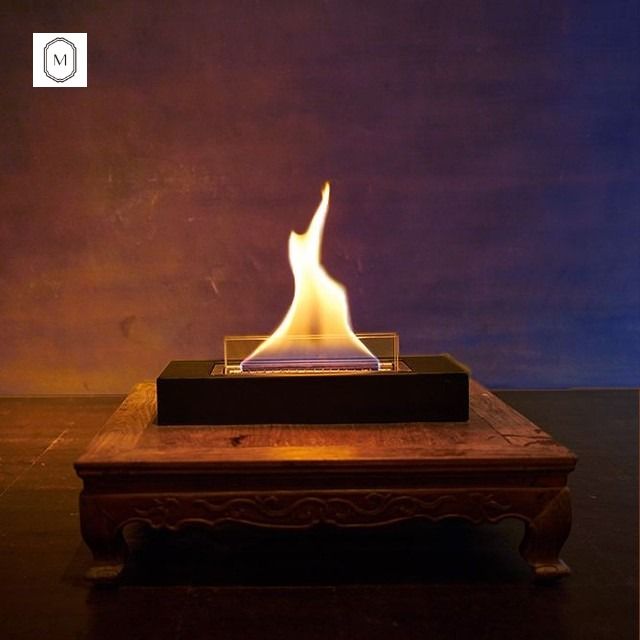 エレン@ConfidenT on X: "自作バイオエタノール暖炉できた〜!一酸化中毒になることもなく黒いすすも出ないけど、暖房能力は殆どなく、燃費も高い。 一回の補給で6時間くらい持つよ。デザインは全てオリジナルで、ギリシャの深緑色の大理石の上に黒の花崗岩を配置。 脚。