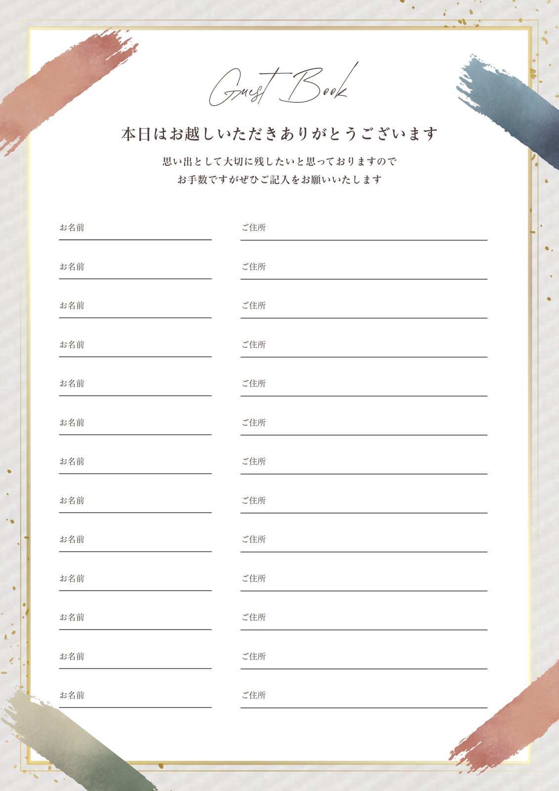 シンプルでかわいい!芳名帳・ゲストブックの無料テンプレート素材📑無料ダウンロード!テンプレルン📑無料ダウンロード!テンプレルン。