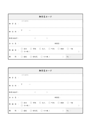 葬儀用の御芳名カード 名刺添付型 のテンプレート・Word無料のビジネス書式テンプレート。