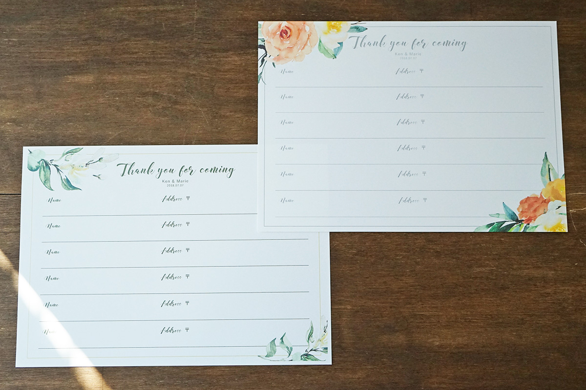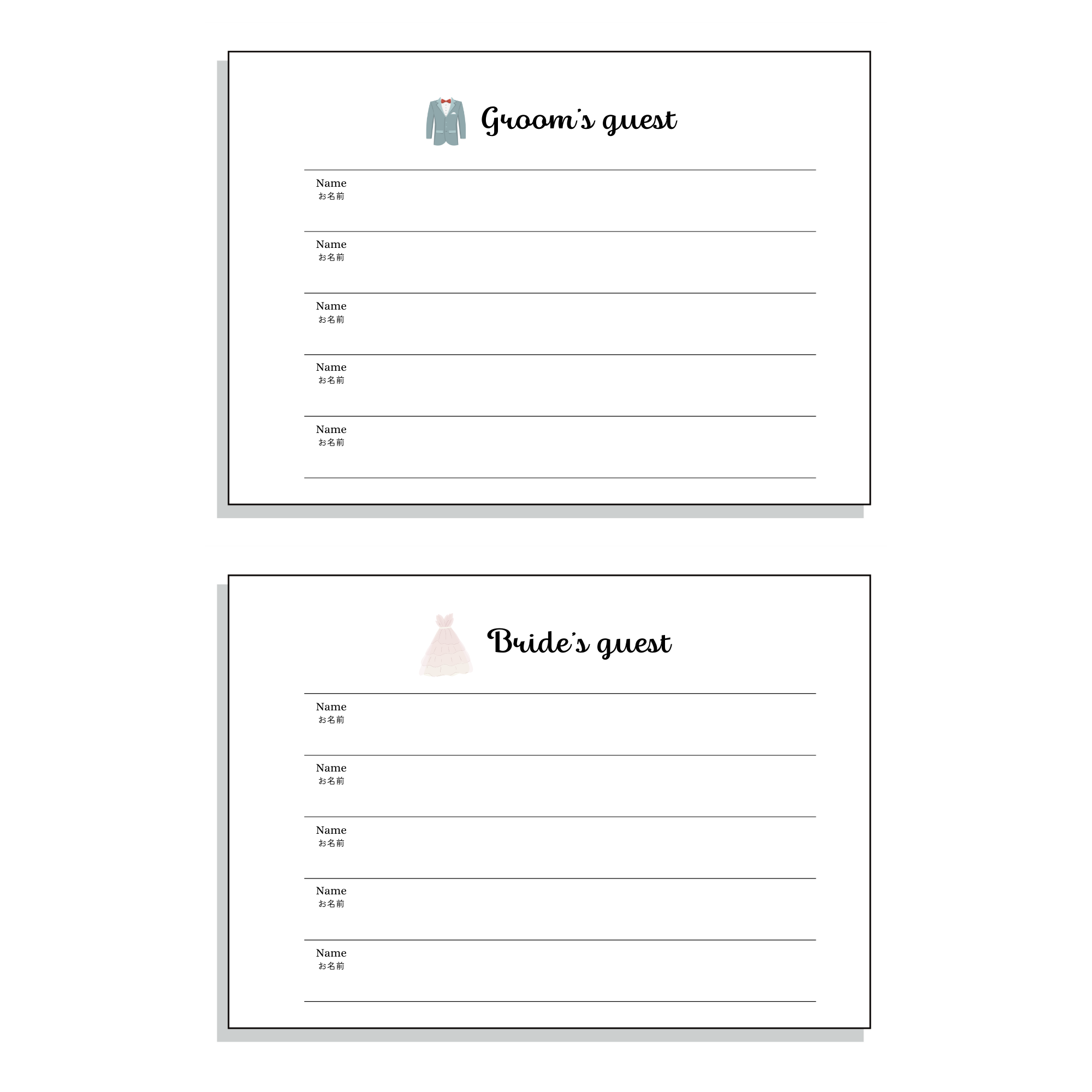 書き方簡単!おしゃれな結婚式用の芳名カード・ゲストカードのエクセルテンプレート!「ワード・PDF」:イラスト無料。