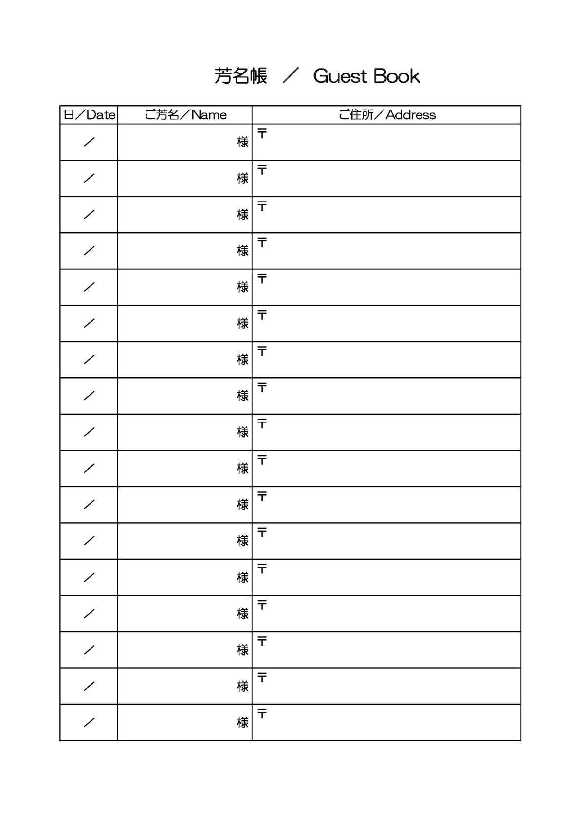 シンプルでビジネスライクな「芳名帳」の無料Wordテンプレート A4サイズ 全てのテンプレートが無料ダウンロード!Word姫。