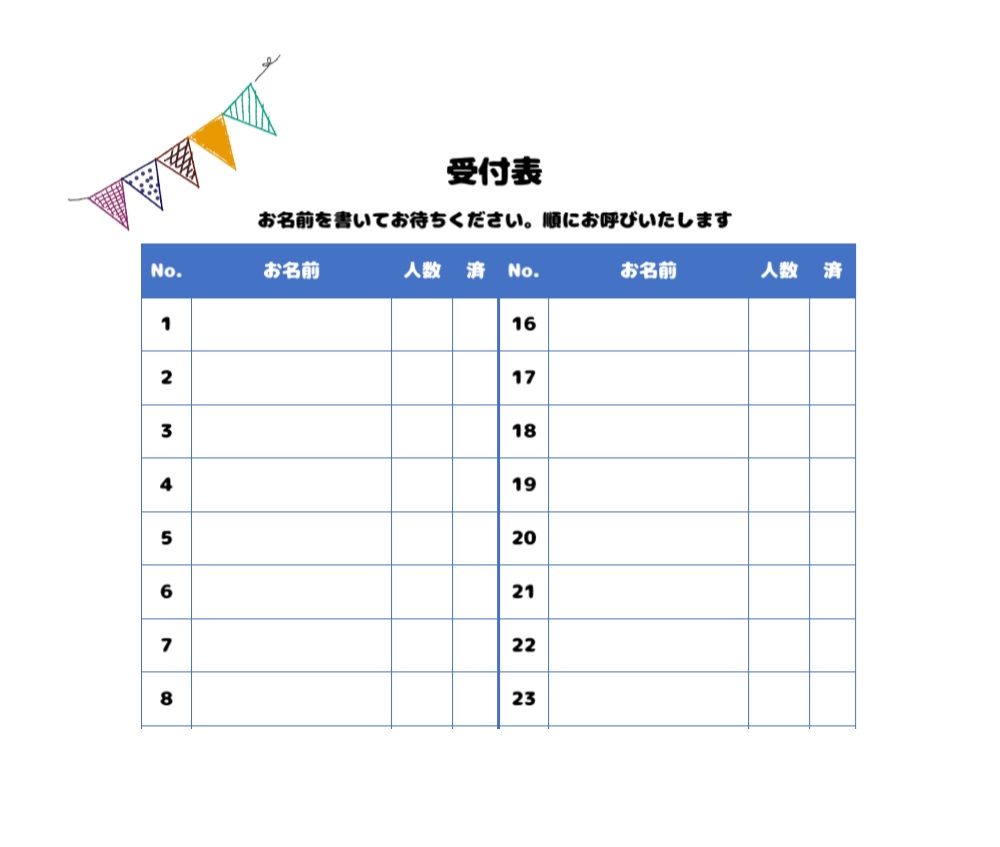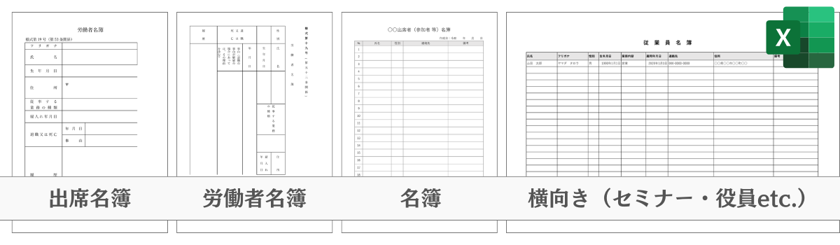 出席者名簿のテンプレート 会議・来賓・講習会・セミナー Excel・Word・PDFのシンプルで作り方が簡単な見やすい素。
