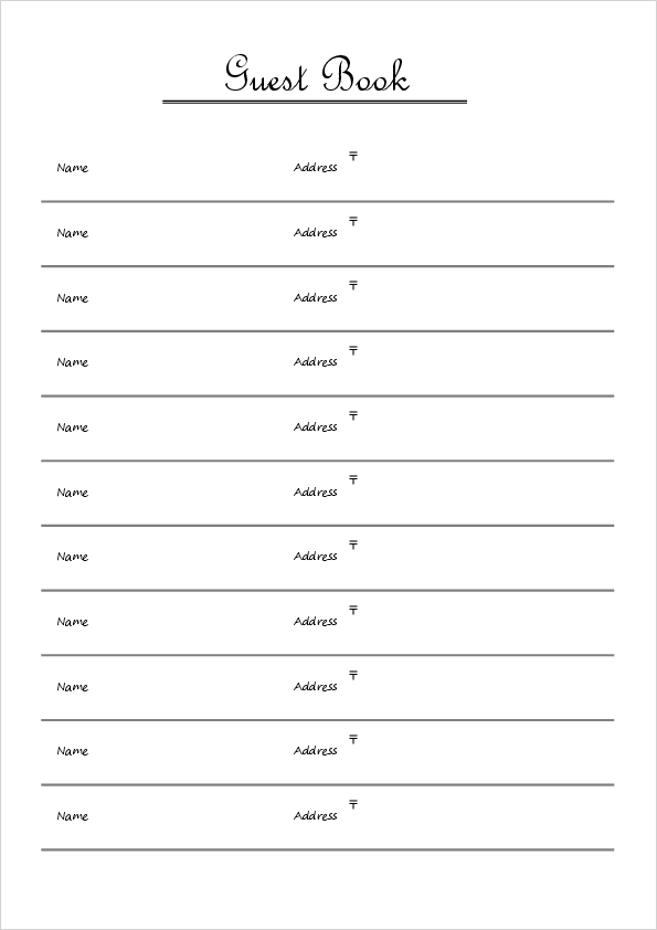 個展、結婚式、展覧会、ビジネスに!おしゃれな名前のみの横書きの芳名帳のテンプレートのダウンロードはコレ!テンプレボール。