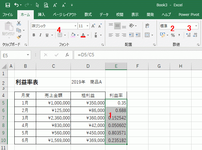 Excelで利益率表を作成する:利益率推移表とグラフの作成方法。