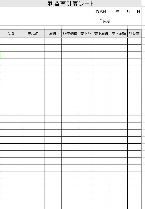 利益率計算シート excel無料の雛形・書式・テンプレート・書き方ひな形の知りたい。
