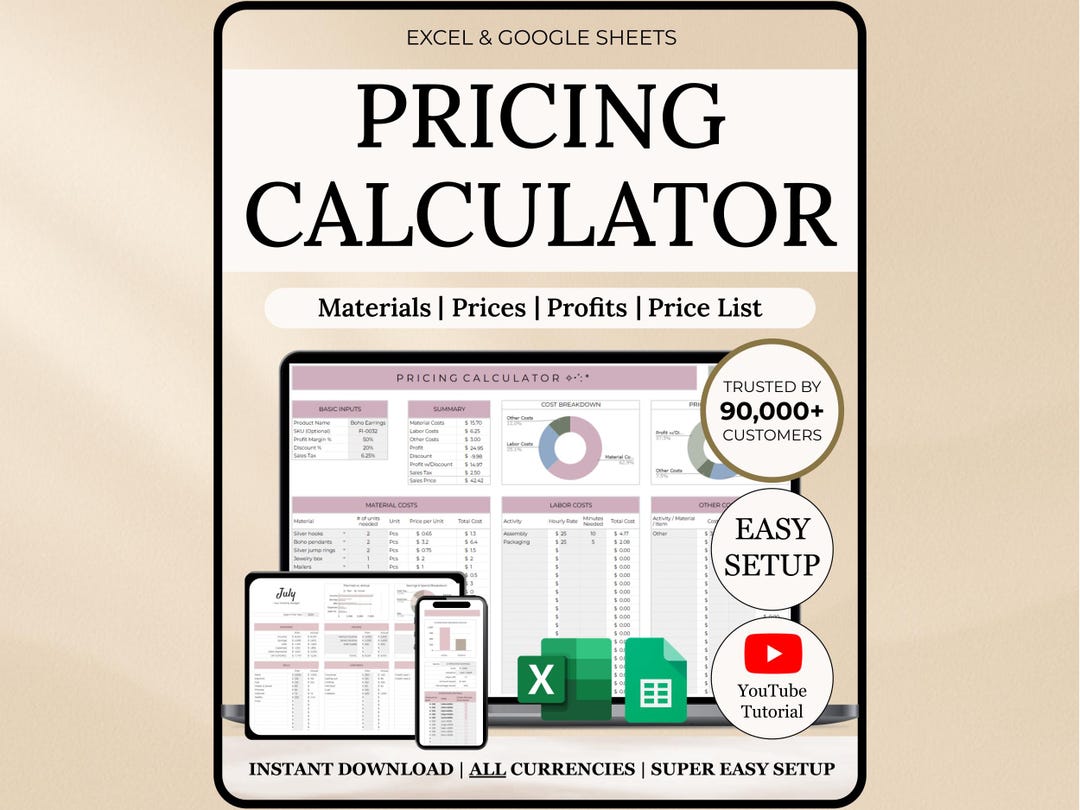 中小企業向け価格計算ツール 製品コストと利益率テンプレート Excel Google Sheets 価格ガイド ハンドメイド製品の利益計算 -Etsy 日本。