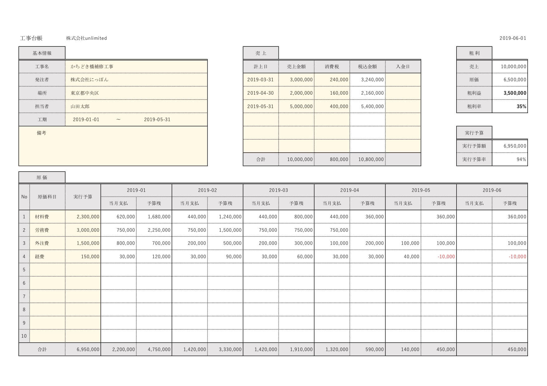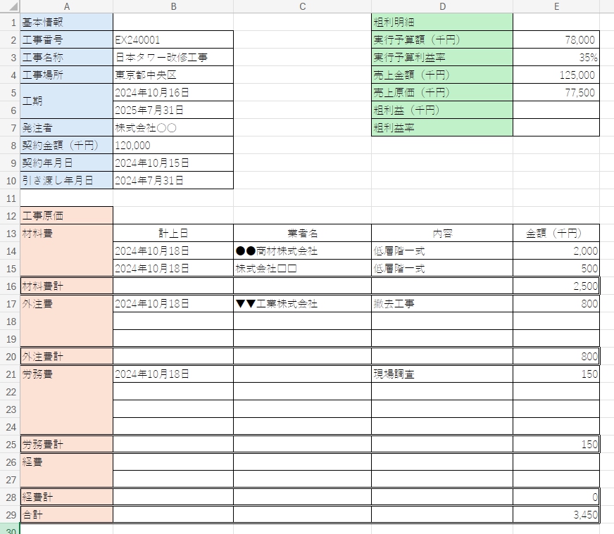 建設業の原価管理表テンプレート!スプシ・Excel無料配布 - Alternative Work。