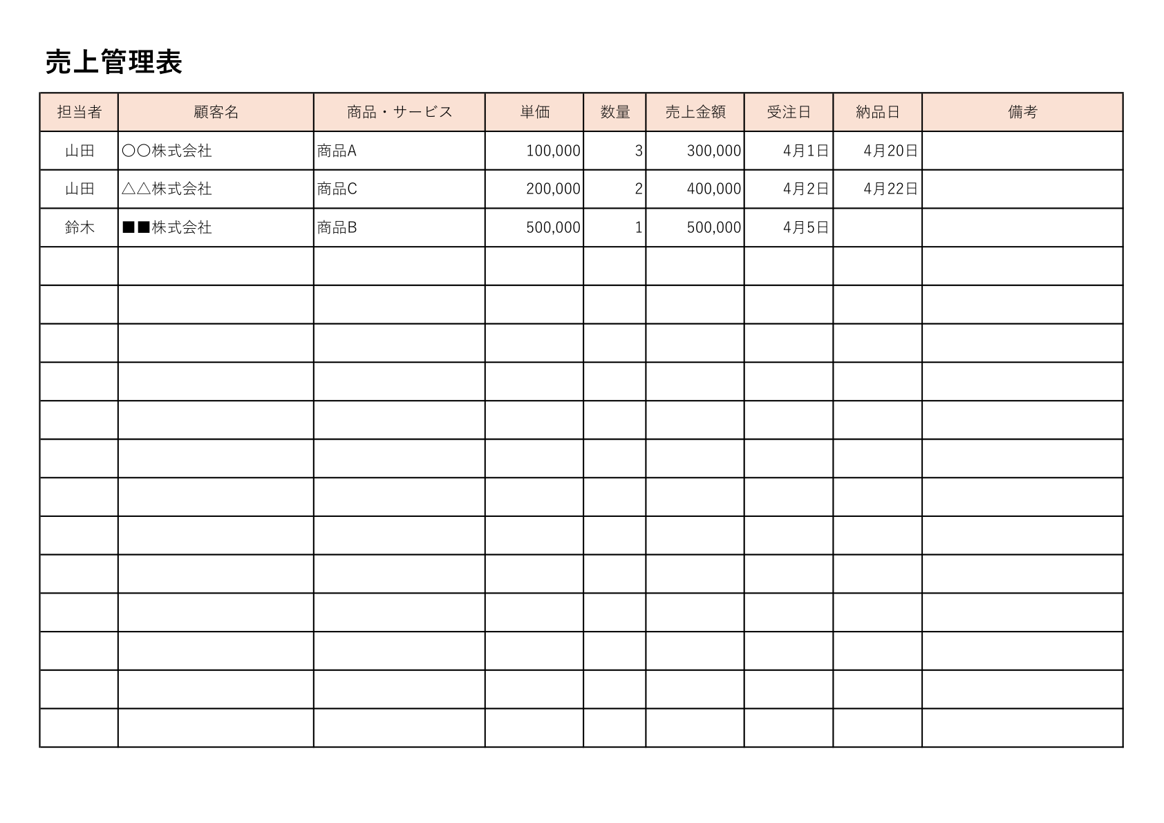 売上管理表の無料テンプレート Excel・スプレッドシートビズ研。