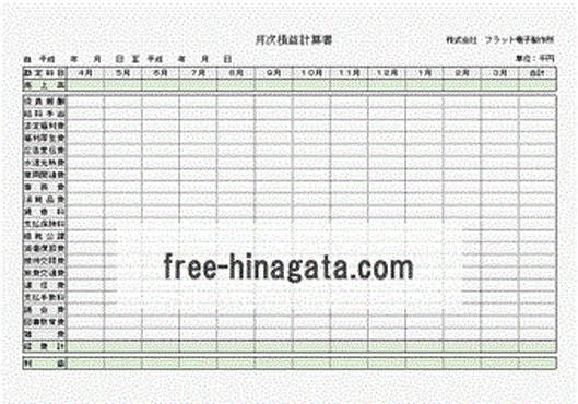 月次損益計算書 売上高と原価・総利益・利益率を追加した2書式 の無料ダウンロード - フリー雛形。