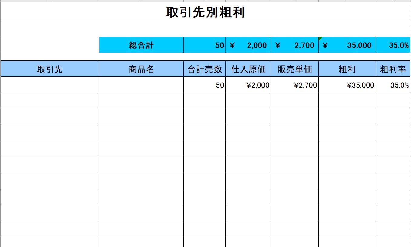 粗利集計表の書式・様式・フォーマット 雛形 ひな形テンプレート 無料エクセル Excel 01 -文書 テンプレートの無料ダウンロード。