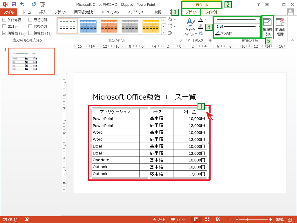 PowerPoint パワーポイント 表の枠線 罫線 を消す方法。