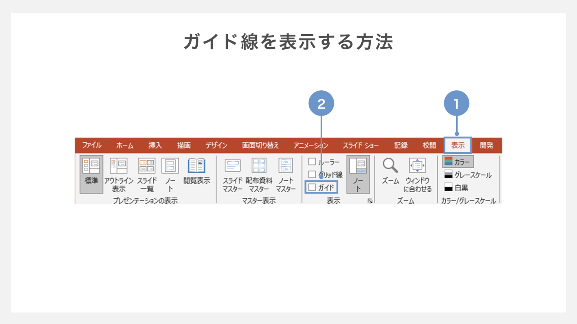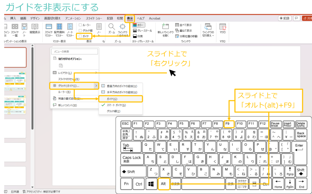 パワーポイントのグリッド・ガイドを表示するには?非表示・消すには?プレゼンマスターの成果が出るパワーポイント資料術。