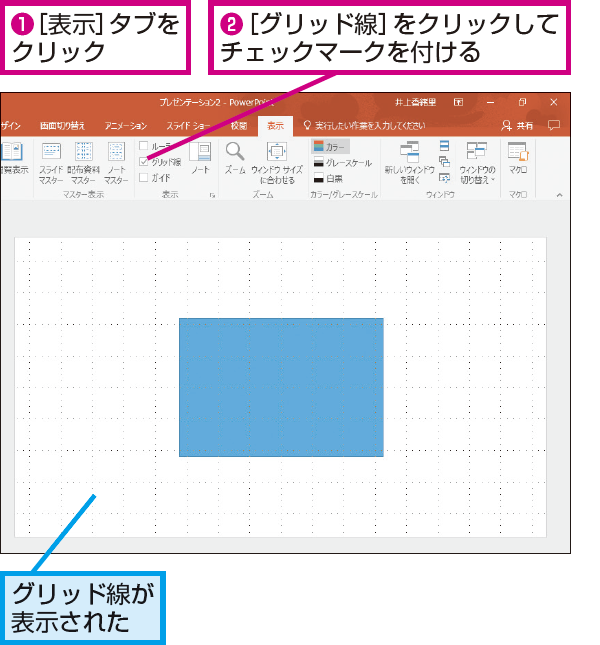 PowerPointでスライドにグリッド線を表示する方法PowerPointできるネット。