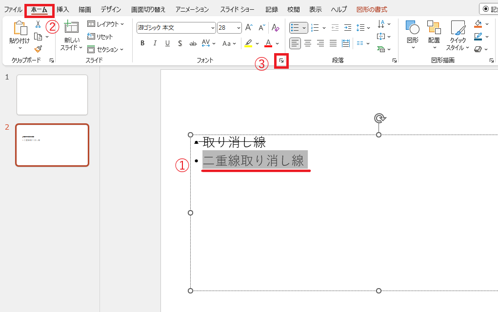 PowerPointで取り消し線を引く方法二重取り消し線の設定も解説。
