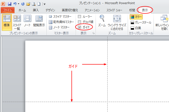 PowerPointのグリッドとガイド - PowerPoint・パワーポイントの使い方。
