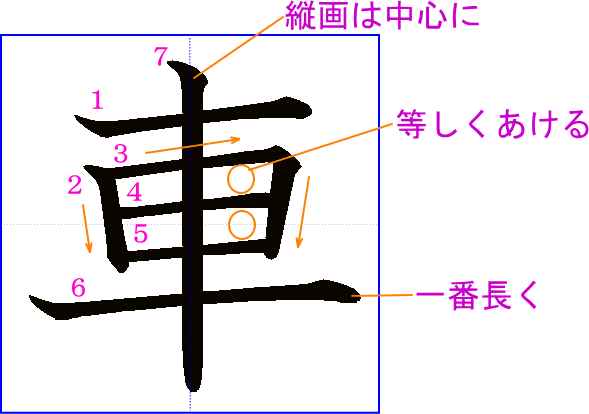 書道 「車」の書き方とコツ&手本動画 毛筆・大筆・楷書 松本松栄堂 書道教室。