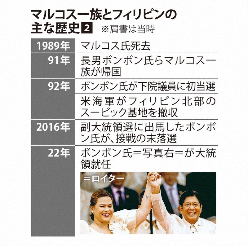 フィリピン、マルコス家とドゥテルテ家の連携に亀裂 - 日本経済新聞。