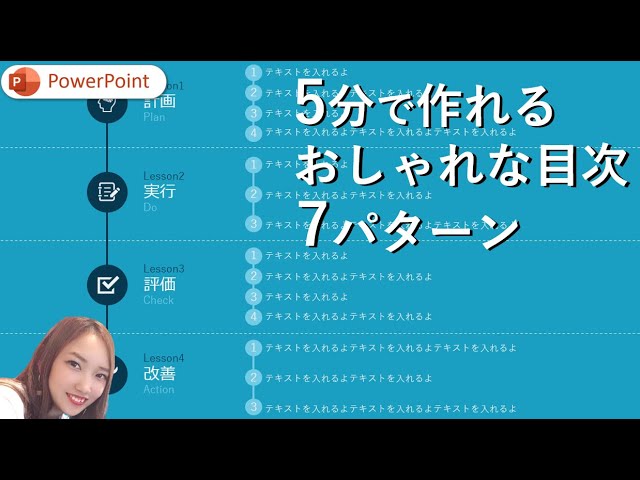 各5分で作れる簡単なのにおしゃれなパワーポイント目次7パターンパワポ目次集パワーポイント目次作り方パワーポイント目次デザイン作り方。