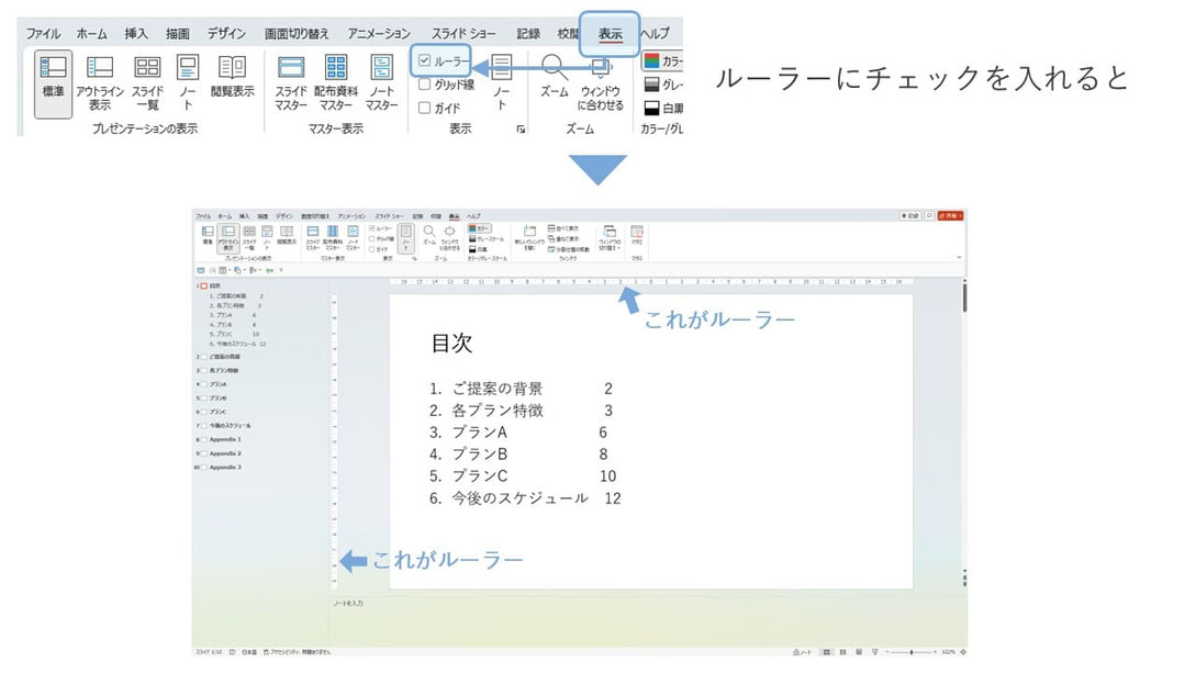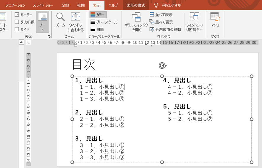 パワーポイント PowerPoint の目次の作り方資料づくりぶろぐ。