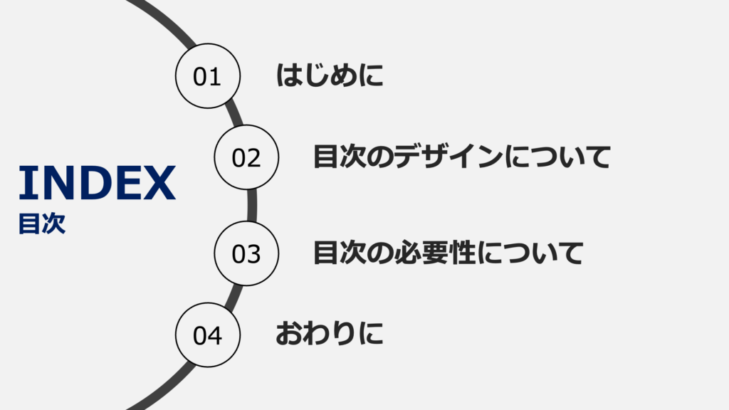 目次のデザインと作り方~わかりやすいプレゼン資料を作るコツ~taku_PowerPoint。